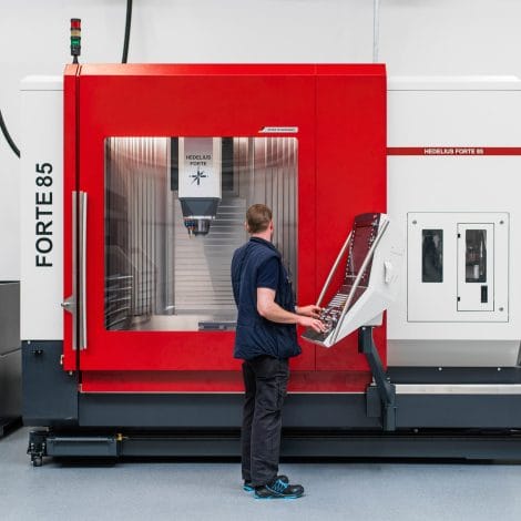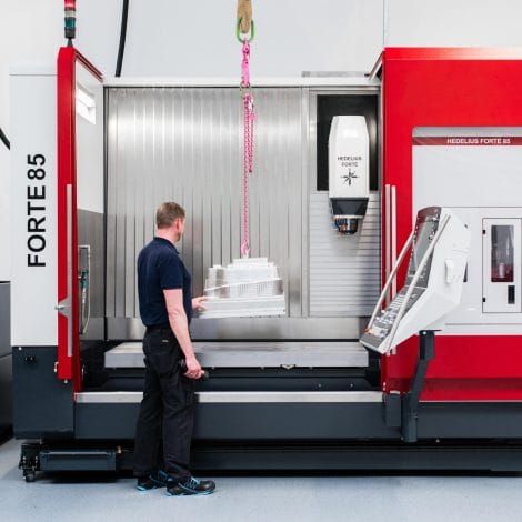 In order that the workspace can be ideally used, everything is oriented toward the operator with the large machine window and the fixed machine bench. The direct access to the work piece is further supported by the ergonomic working height of the machine bench. Vertical stainless steel coverings ensure an optimised falling of shavings – even for the volume machining of aluminium. Little time is thus required for cleaning work with the FORTE 85 Single 1620.