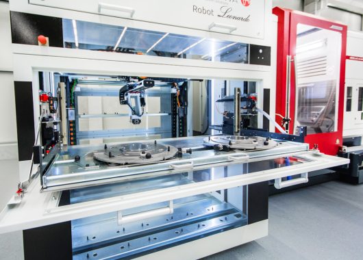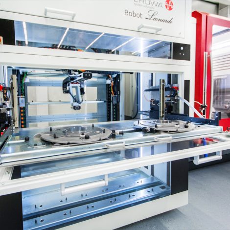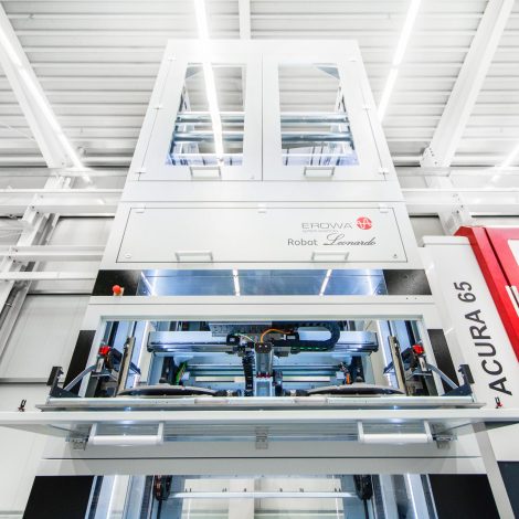 The EROWA Leonardo is a pallet handling device with multi-level magazines. The transfer weight is 80 kg (or optionally 120 kg). The X-axis has a long travel, so it works even in big machines. The small range of commands required are entered via a touchpad. The integrated controls are highly autonomous. Pallets are automatically placed in a free slot.