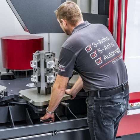 Set up the follow-up order with “zero” set-up time for individual parts or small to medium series? With a 5-axis machining centre from the ACURA series, the MARATHON PL406 as a device storage unit, and the Standby Magazin as a large tool storage unit, this becomes a reality. As with the MARATHON SR422, the seamless operating concept of the ACURA MARATHON with Heidenhain TNC, which is featured on the machine and on the tool terminal of the Standby Magazin, is also impressive. The pallet magazine has buttons for rotating the pallet carrier and for acknowledging blanks for easy operation. The job list is created on the Heidenhain controls in the Batch Process Manager.